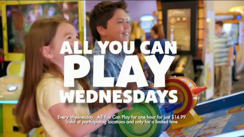 Wednesdays – All You Can Play Day at Chuck E. Cheese’s. “Play as many games as you’d like every Wednesday with our ALL YOU CAN PLAY promotion. Enjoy unlimited play for one hour using your Play Pass card for only $14.99.”