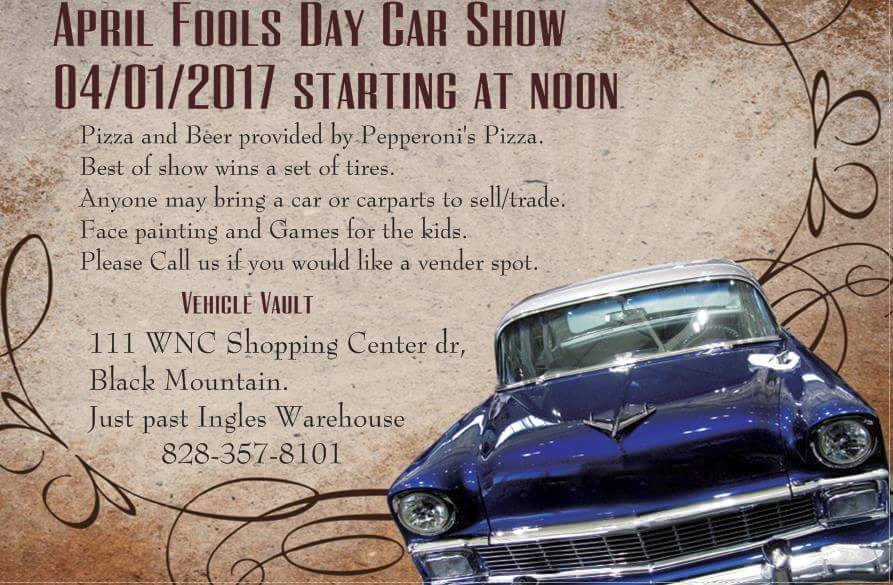 Pizza and beer provided by Pepperoni’s Pizza. Best of show wins a set of tires. Anyone may bring a car or carparts to sell/trade.