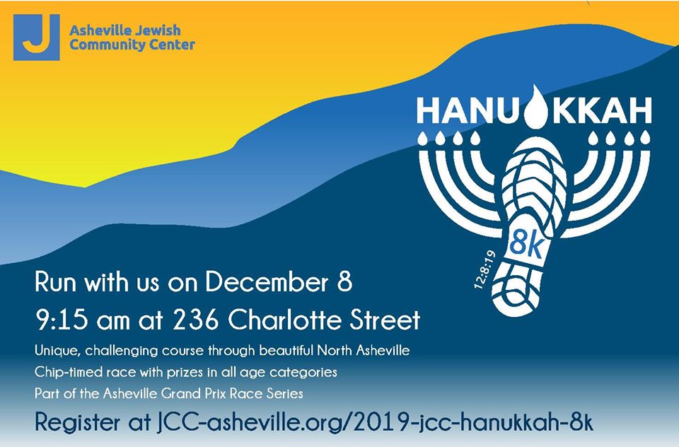 The 4th annual Asheville Jewish Community Center Hanukkah 8K will take place on Sunday, December 8, 2019 at 9 am.