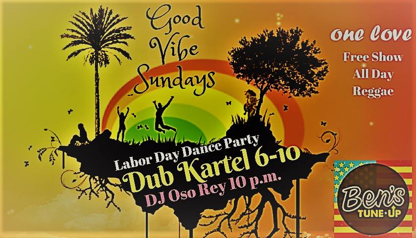 The End of Summer is here and we are taking it out with a Bang!! All Day Reggae and late night Dance Party! Dub Kartel Takes the stage at 6 p.m. Followed By Oso Rey Spinning old school reggae beats!! Free Show! Crazy drink specials all day!!