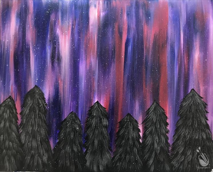 Family Friendly Painting Class: Purple & Pink Northern Lights (7+yrs)