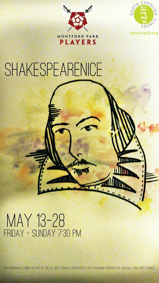 Montford Park Players, an Asheville theatrical tradition, is proud to announce their upcoming presentation of The Asheville Shakespearience, a collection of some of William Shakespeare’s greatest scenes. The show will be directed by Christine Eide, Caleb Owolabi, and Adrian Suskauer, and will be presented at the Hazel Robinson Amphitheater, located at 92 Gay Street in the heart of the Montford region of Asheville, May 13th through the 28th. Performances will be on Fridays, Saturdays and Sundays, beginning at 7:30pm. All summer shows at the Amphitheatre are absolutely FREE to attend.