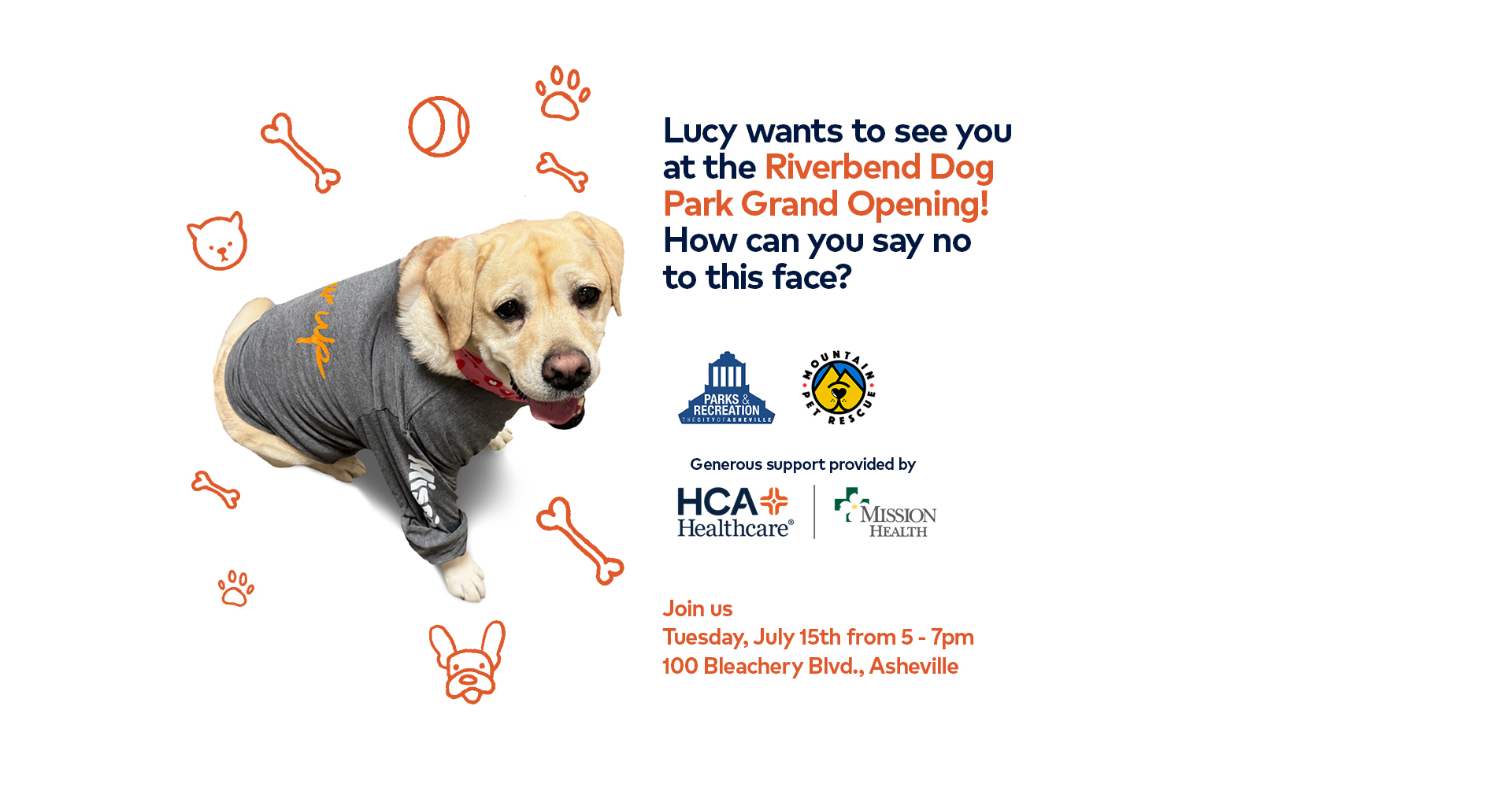 Join HCA Healthcare’s Mission Health and Asheville Parks & Recreation for the grand opening of the Riverbend Dog Park, a temporary dog park space created in partnership to serve our community post-Hurricane Helene. HCA Healthcare’s Mission Health and Asheville Parks & Recreation are committed to rebuilding and strengthening our community—join us for an evening of fun, connection, and purpose.