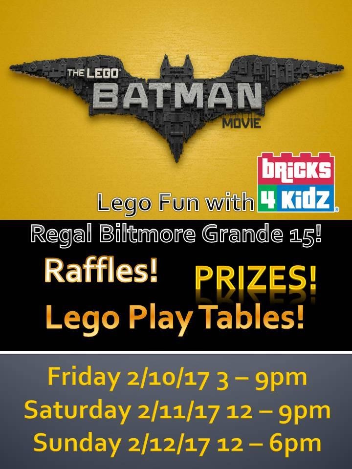 We can’t wait to see you at the movie premier and have a GREAT time building with you all!! We will have lots of great raffle prizes, including Lego Batman sets, Bricks 4 Kidz Batman t-shirts and even a FREE WEEK OF SUMMER CAMP!! Our summer camps will be open for registration at this event and we will have a special gift for anyone who registers for a camp while visiting with us during the movie weekend!!
