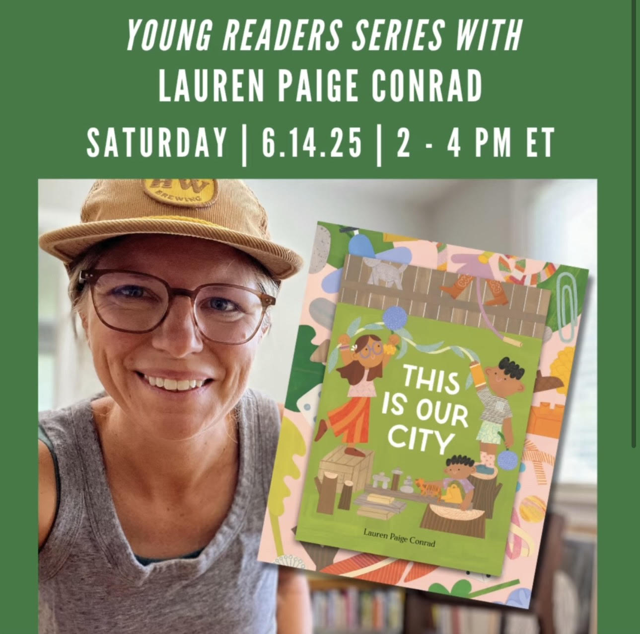 On Saturday, June 14, 2025 – 2:00pm to 4:00pm, please join us at The Hop Ice Cream (and Pop Bubble Tea) for a meet & greet and book signing with Lauren Paige Conrad, author and illustrator of the new picture book, This Is Our City. Drop in between 2 and 4 PM.