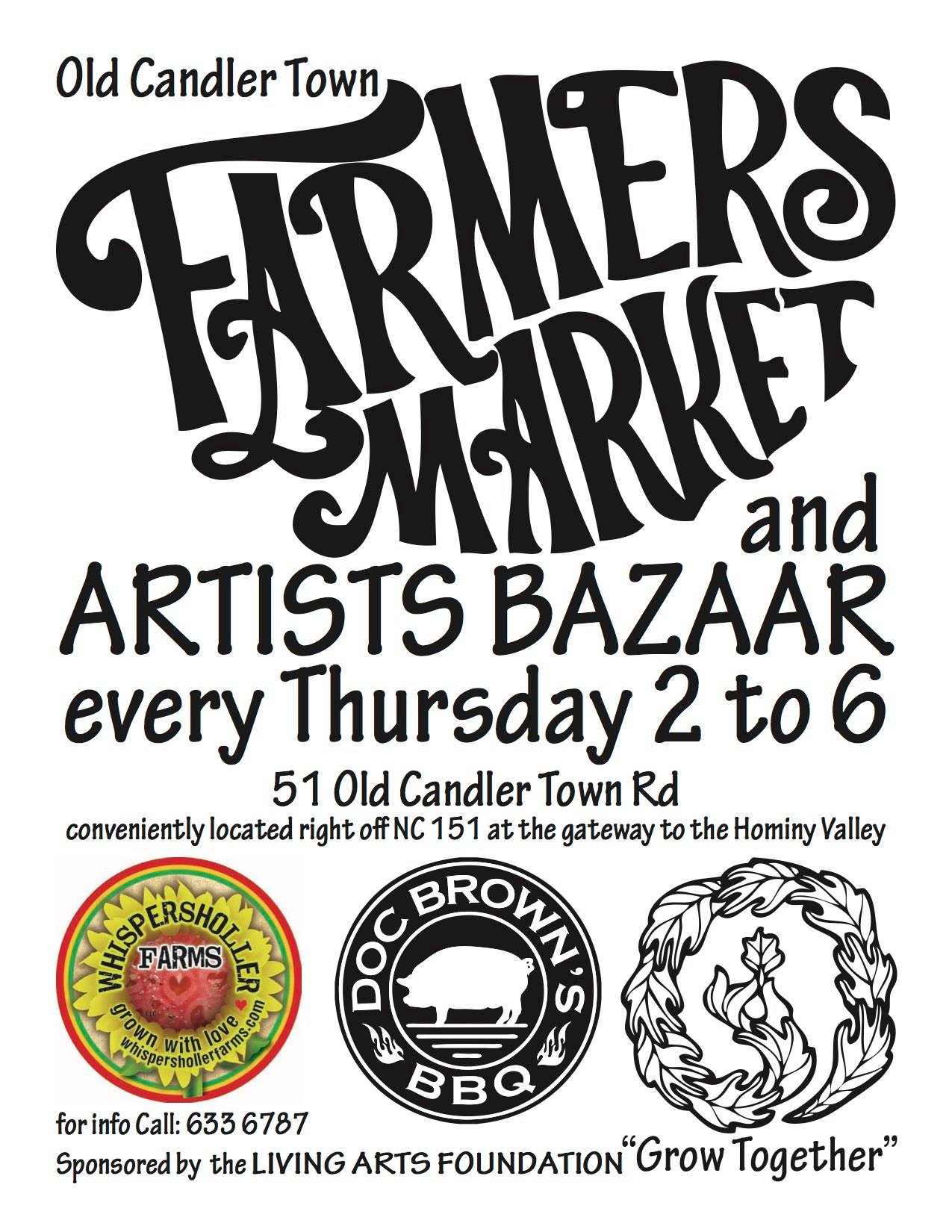 Come out and support local food, art and families! Some of what you will see include: Whisperholler Farms, Doc Brown’s BBQ Food Truck and a number of artists!