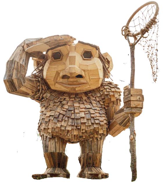 Produced by Imagine in collaboration with Danish artist Thomas Dambo, these friendly and fanciful sculptures evoke a sense of wonder and intrigue as they study our small, intricate and inventive ways of life in Western North Carolina. Standing seven to nine feet tall and lovingly described by the artist as “Baby Trolls”, the creatures are crafted from materials like fallen branches, wooden pallets and twigs.